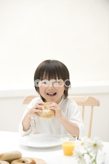 | 子供 | クッキング・食事 | ご飯・パン | 人物 | 日本人 | 男の子 | 一人 | 1人 | インドア | 屋内 | 室内 | ダイニング | 食卓 | 朝食 | 食事 | オレンジジュース | パン | 食育 | ベーグル | パン食 | 洋食 |