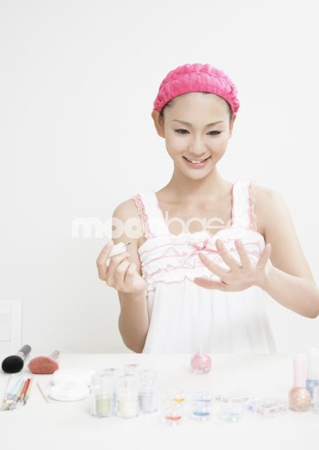 | 女性 | 20代〜30代 | 美容 | 人物 | 日本人 | 女 | 一人 | 1人 | インドア | 屋内 | 室内 | 化粧 | メイク | 化粧品 | ヘアーバンド | マニキュア | |